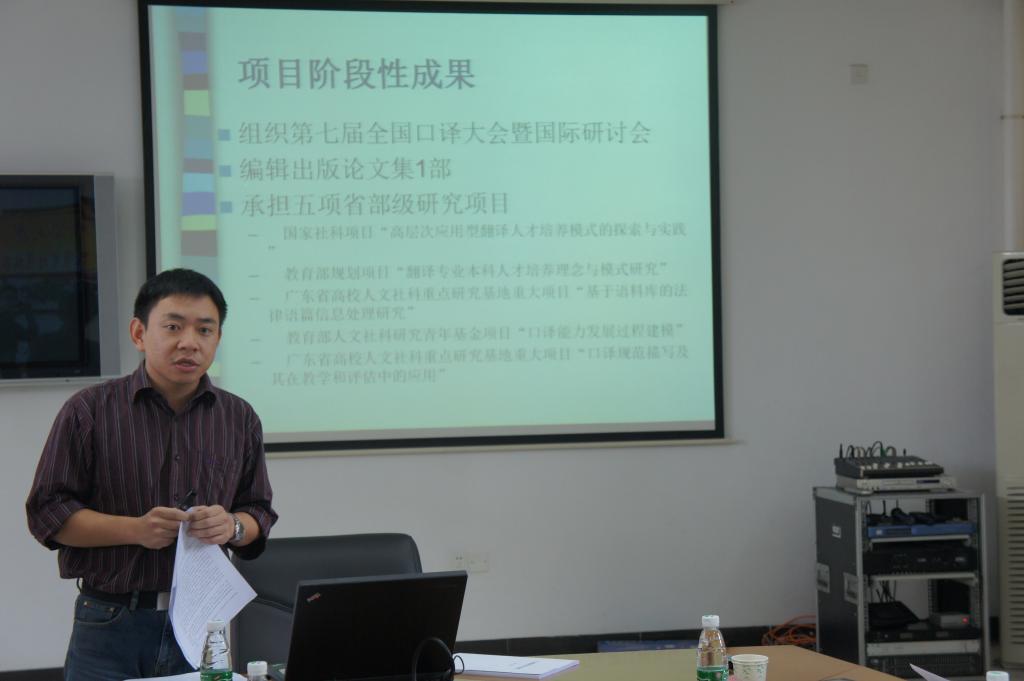 评审会上,詹成副教授代表“口译研究方法论”项目组、穆雷教授代表“翻译学研究中的方法论”项目组分别介绍了两个项目的基本情况、项目阶段性成果和最终成果,并认真听取了项目评审专家组分别对两个项目提出的建议和意见。