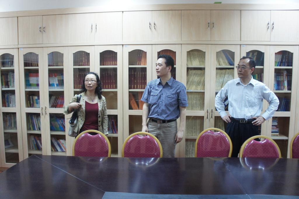 4月23日,全国外语类一级期刊《中国翻译》编辑部副主编杨平女士应高级翻译学院之邀来访,上午杨平女士来到翻译学研究中心,翻译学研究中心主任莫爱屏教授和高级翻译学院副院长兼MTI中心主任赵军峰教授陪同杨平女士参观了翻译学研究中心和中心资料室。莫教授向杨平女士介绍了中心的发展情况以及资料室建设情况。杨平女士特别关注了中心各类期刊的订阅情况,并对资料室建设提出了建议。