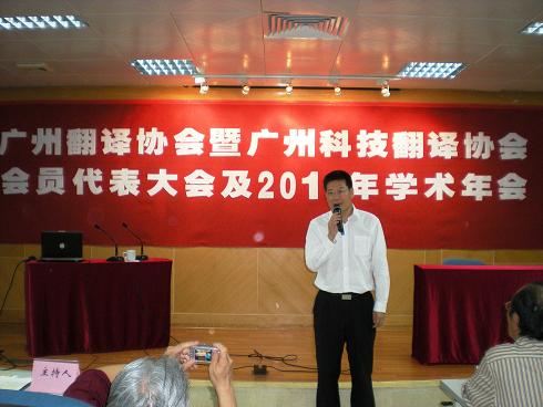 5月7日,广州翻译协会、科技翻译协会第八次会员大会在广州市科协大楼召开。与会百余名会员听取了第七届工作报告。在报告中,即将离任的老会长、广外前校长黄建华教授回顾了过去五年的工作,指出在取得成绩的同时要着眼于“十二五”期间继续推进两译协的工作。