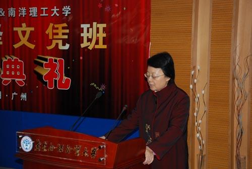 接下来,新加坡高级项目主任高虹作了热情洋溢的发言,她感谢高翻学院的周到安排和对于该合作项目的高度重视。接下来班长梁励明代表学员进行了发言,他对高级翻译学院提供的这次难得的学习机会以及组织他们游览广州的景点,学习中国的文化的机会表示由衷的感谢,并特意制作了五分钟的视频短片、向任课教师赠送礼物以此来表达他们的感激之情。